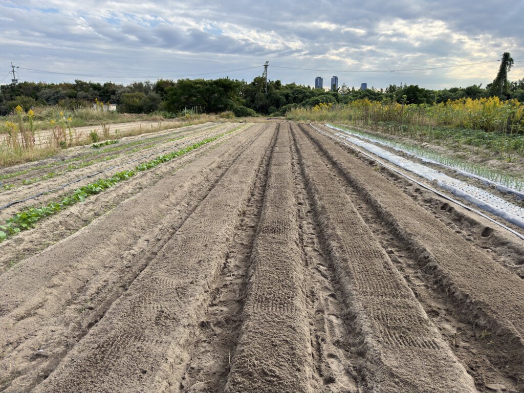 タネをまいて約1ヶ月後に定植です!畝立てをして準備完了!