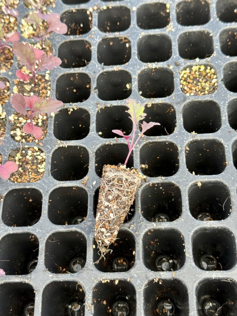 9月ごろにタネをまいて、育苗はセルトレイでやりました!芽が出た直後は小さくてカワイイですね。