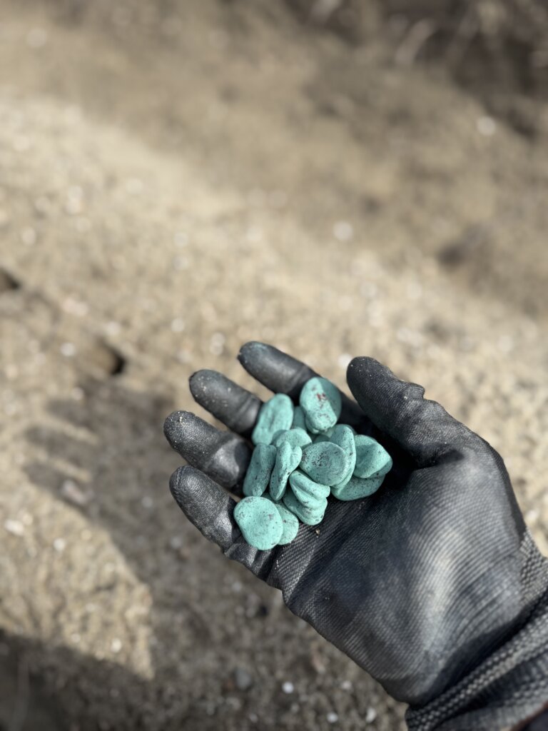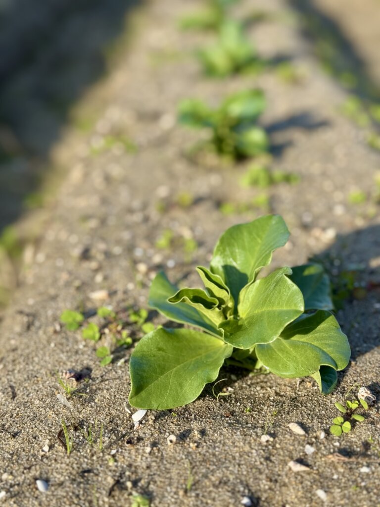 今回も直播きで栽培をします!種は病気の予防や鳥に食べられないように色がついてますね。